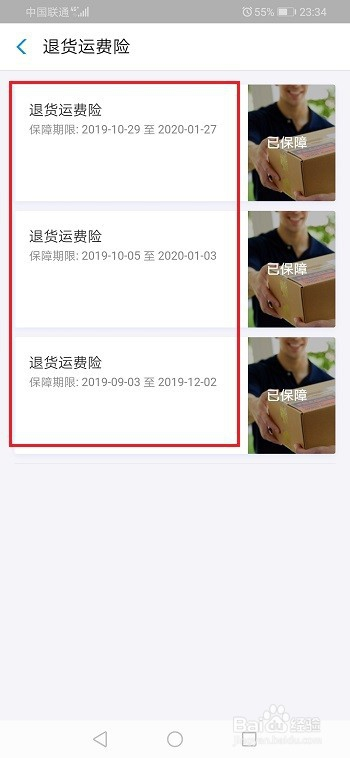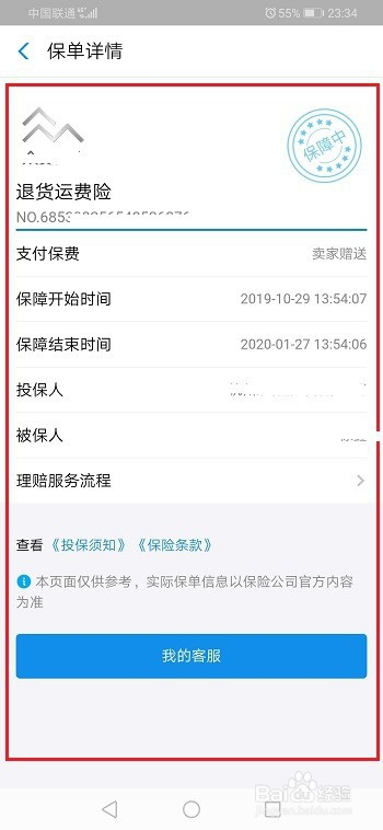 第四步进去全数保单之后,可以看到运费险,需要注重的是运费险一般是商家赠予的,若是没有赠予的话,一般就没有运费险,除非本身采办了,如下图所示: