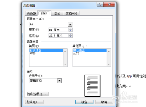点击“纸张"选项,在纸张的选项中,可以对纸张经由过程现实利用的页面大小。