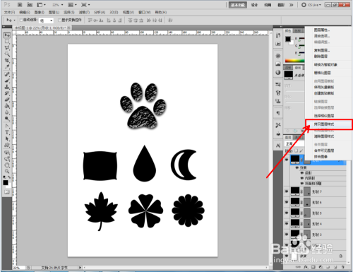 最后,将我们设置好的硬壳结果图层样式拷贝粘贴给别的几个自界说图案即可。