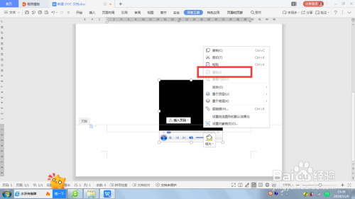 此时“Windows media player”控件显示在页脚处,右击点击“属性”按钮。