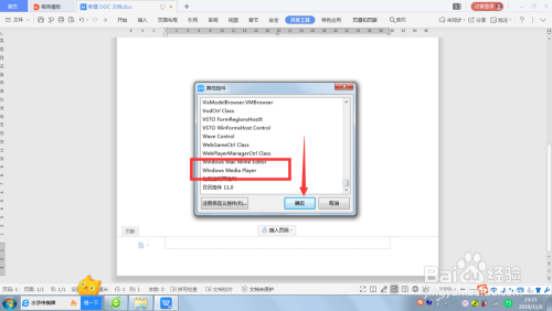 在“其他控件”对话框中选择“Windows media player”点击”确定“。
