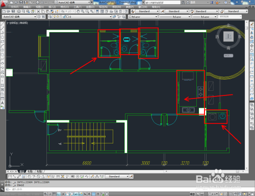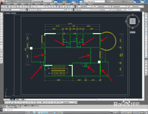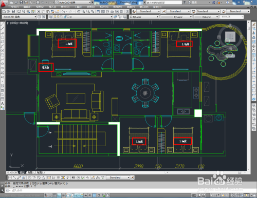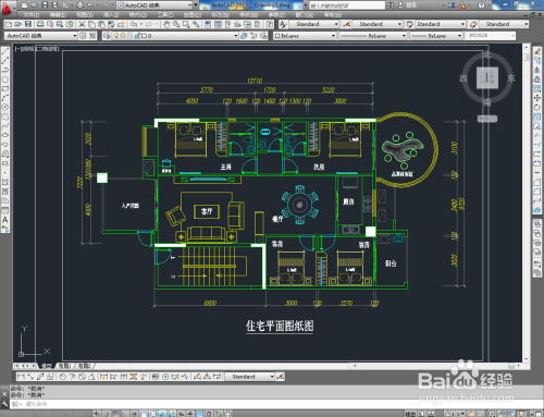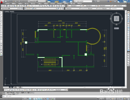 打开AutoCAD 2013软件,绘制一个室第施工平面图并标注好尺寸;