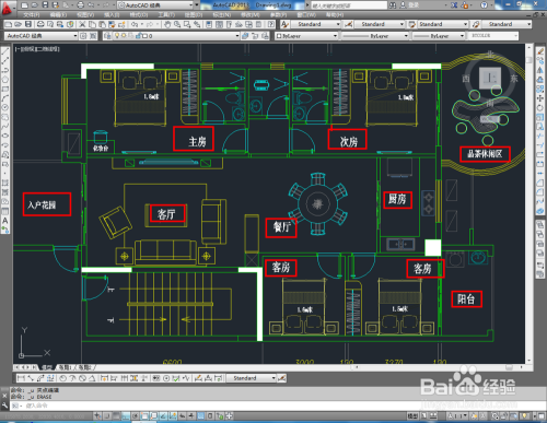 最后,对各空间进行文字标注,这样我们的施工平面安插图就绘制完当作了。