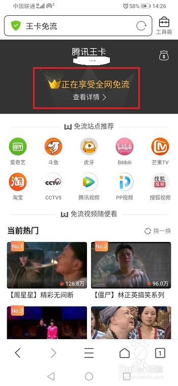 第三步在王卡免流界面,选择查看详情,如下图所示: