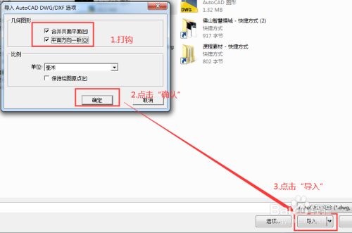 在弹出的对话框中,把第一二项打钩,如图所示,然后点击“确认”-“导入”