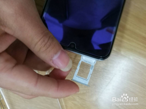 在我们手机的最前面卡槽的小孔里,利用别行针插入,会主动弹出卡槽