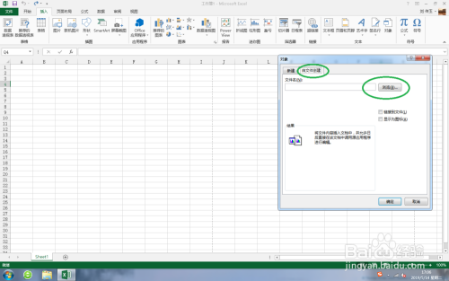 在弹出信息中,选择【由文件建立对象】,点击浏览按钮,如图。