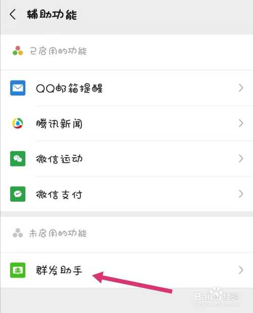 点击进去“辅助功能”会看到“群发助手”点击进去;