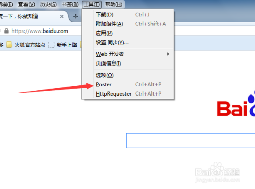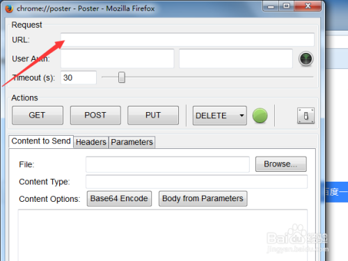 这样poster的东西被打开了,可以对进行测试了,演示百度首页链接网址,把网址黏贴到poster东西URL的位置上。