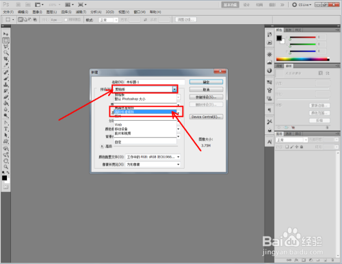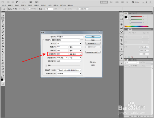 将分辩率设置为:300,颜色模式设置为:CMYK;