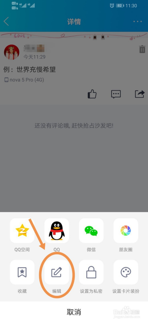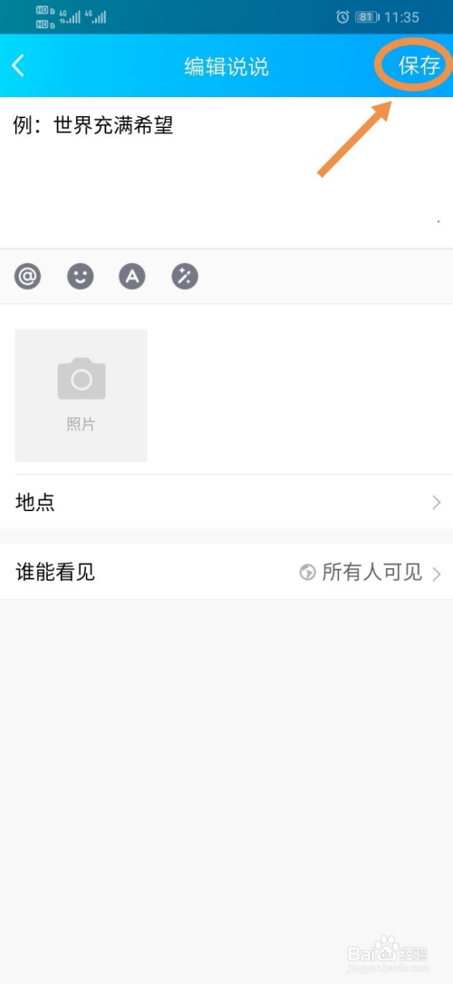 就会进入这篇说说的编纂界面,然后我们就可以把适才的错别字更正,之后点击保留就好啦!也可以增添内容,或者图片都可以哦!