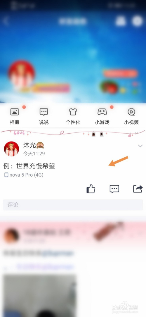 首先我们先发一篇说说,例如:宿世界布满但愿 点击颁发,说说就已经发出去了,这时我们才发现我们的“满”字不小心打错了,打当作了“慢”,我们该怎么办呢?