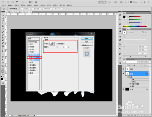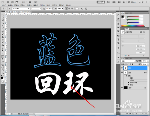 双击“蓝色”文字图层,按图示给文字设置一个蓝色回环文字结果;