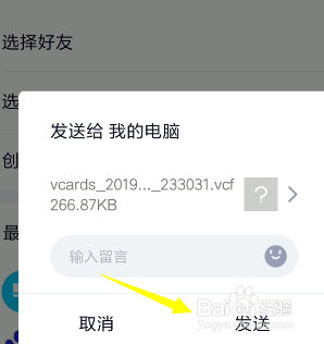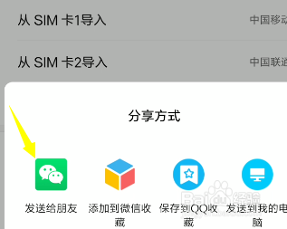 这个时辰我们选择导出,然后选择下面的分享联系人。