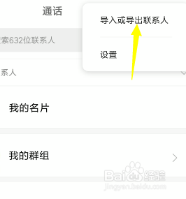 点击这个菜单可以看到提醒导入或者导出联系人。