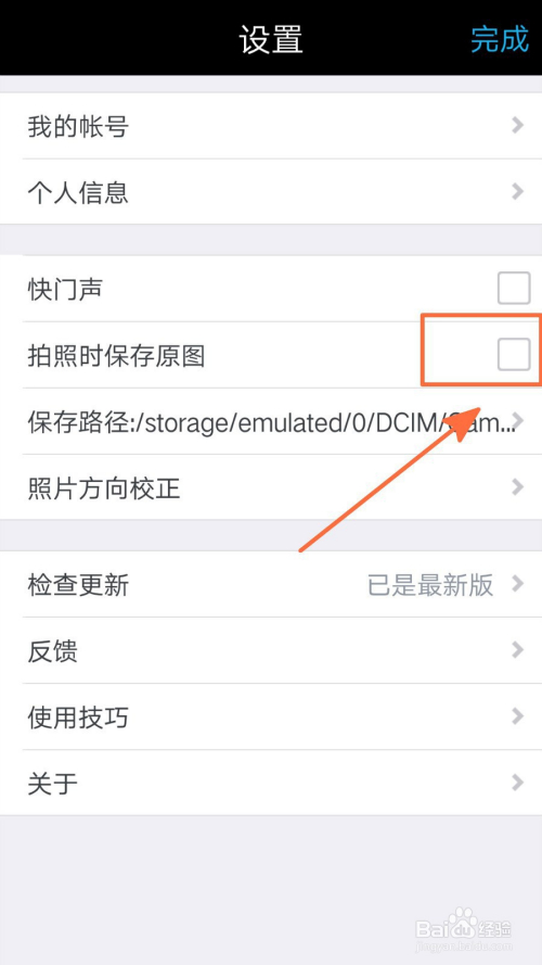 在设置页面中可以看到摄影保留原图功能,从中可以或许看到此功能为开启状况;