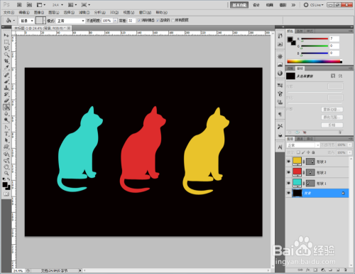 双击猫图层前面的色块,将猫图案设置为我们需要的颜色即可。