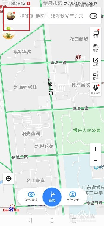 第一步打开百度地图,进去地图界面之后,点击账号头像,如下图所示:
