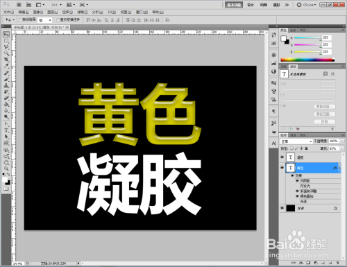 点击【文字东西】按图示设置好文字各参数后,完当作“黄色”和“凝胶”文字建造;