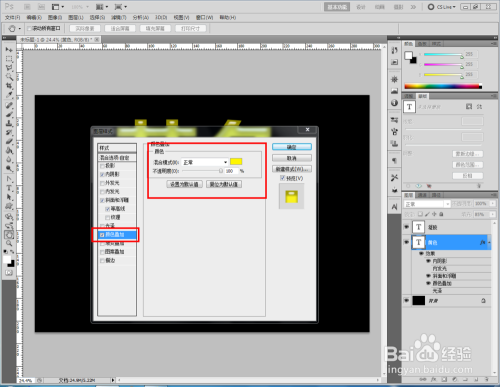 双击“黄色”文字图层,按图示给文字设置一个黄色凝胶文字结果;