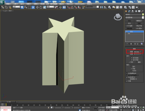选中五角星,点击【点窜】-【挤出】,按图示设置好挤出的各个参数,绘制出一个五角星柱体模子;