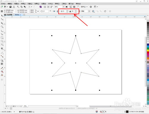 按图示将星形图案的参数设置为六角星的图案参数,绘制出六角星;