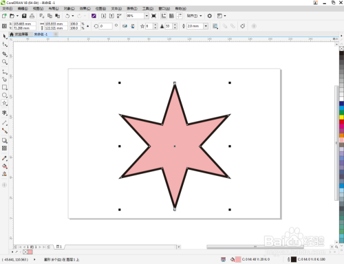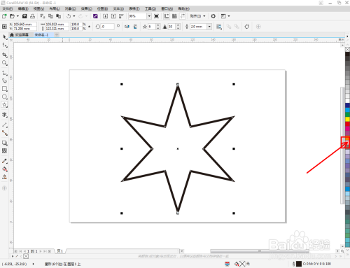 选中六角星图案,鼠标左键点击右边色板中的色块,按照需要设置好六角星颜色即可。