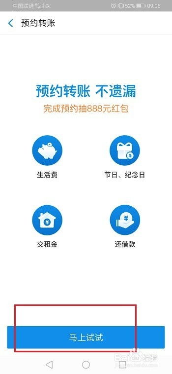 第二步进去转账界面之后,点击预约转账,如下图所示: