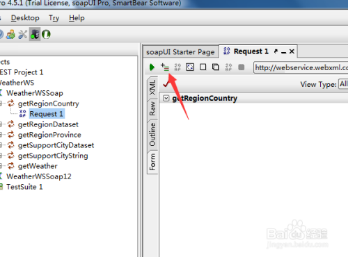 进入到soapui中已经加载好一个接口的调集,选中一个需要建立的一个接口。