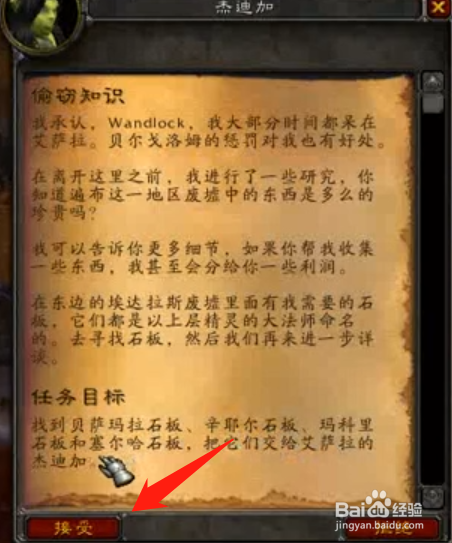 然后找到NPC杰迪加,领会使命环境,点击该使命,接管“盗窃常识”的使命。