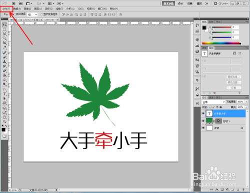 打开photoshop CS5软件,打开一个绘制好的psd文件;