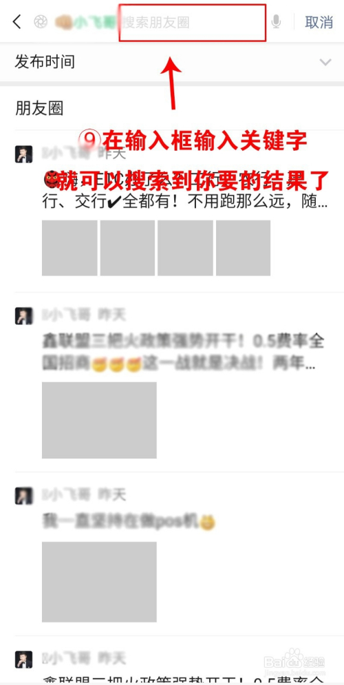 在输入框中粘贴前面复制的昵称,会呈现本身的朋友圈选项