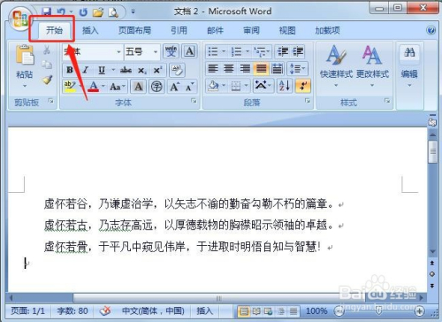 运行Word 2007,打开要操作的Word文档。单击页面左上角“起头”选项卡。