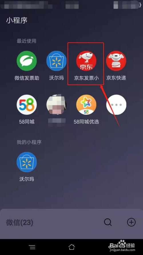 在比来利用的小程序下拉列表中,点击“京东发票小助手”。