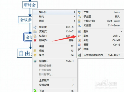 如需要进行添加一个箭头,右键》插入》联系,箭头指标的目的的位置由本身指定。