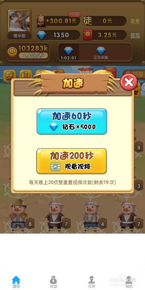 进入养猪富翁把离线收益翻倍一下,如下图所示。