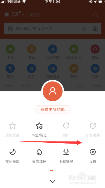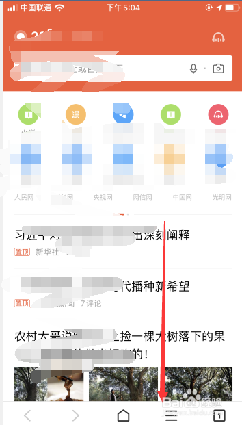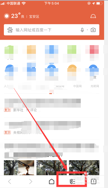 进入浏览器首页,点击页面下方的【菜单栏】,如下图红标位置所示