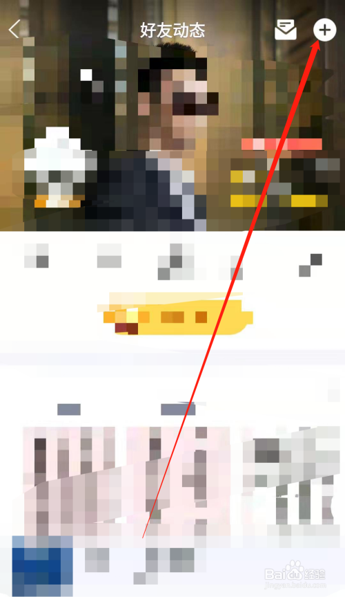 进入手机QQ的老友动态页面后,点击页面右上角的+,进入手机QQ的老友动态更多功能页面。