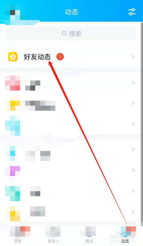 进入手机QQ的动态页面后,点击老友动态一栏,进入手机QQ的老友动态页面。