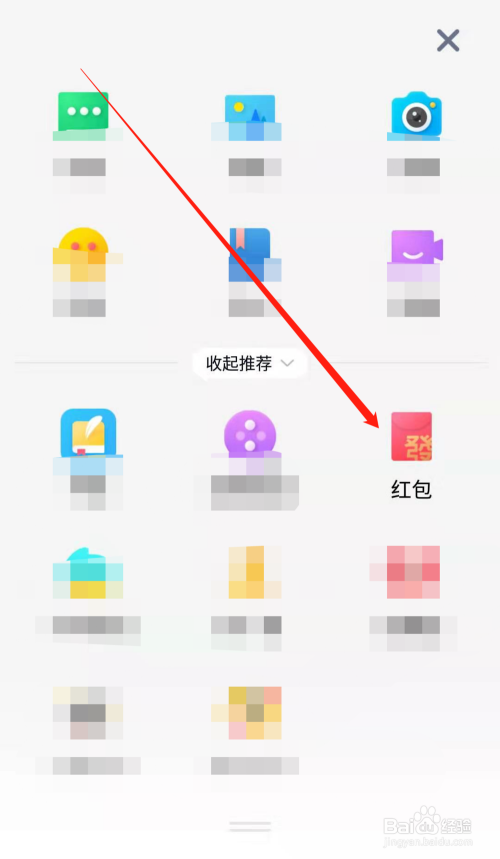 进入手机QQ空间动态的更多功能页面后,点击如下图所指的红包,进入空间小红包页面。