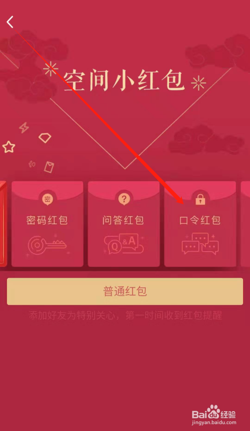 进入QQ空间小红包页面后,点击口令红包,进入空间口令红包的口令设置页面。