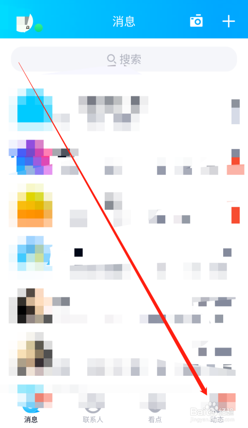 打开手机QQ,进入QQ首页,点击页面右下角的动态,进入手机QQ的动态页面。