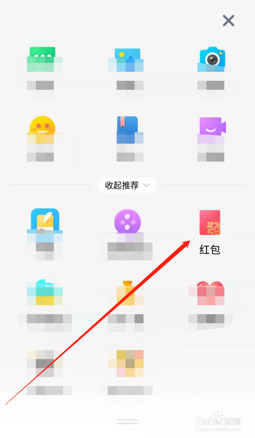 进入手机QQ空间动态的更多功能页面后,点击如下图所指的红包,进入空间小红包页面。