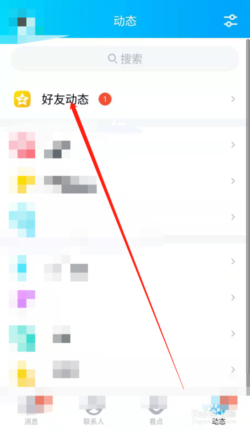 进入手机QQ的动态页面后,点击老友动态一栏,进入手机QQ的老友动态页面。