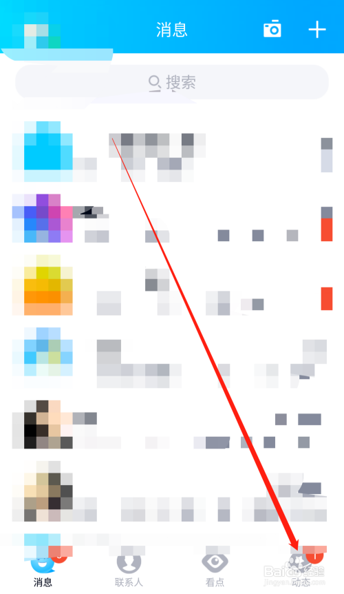 打开手机QQ,进入QQ首页,点击页面右下角的动态,进入手机QQ的动态页面。
