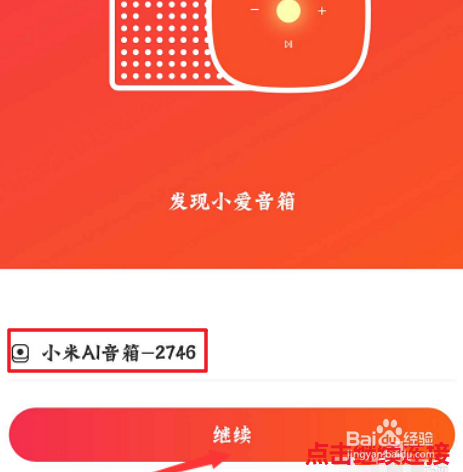检测到四周的小爱音箱设备之后,选择点击“继续”毗连小爱同窗。