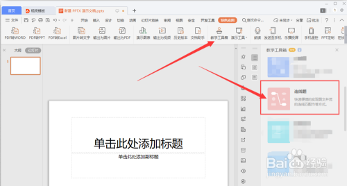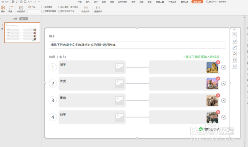 第四步:点击讲授东西箱后,找到右侧面板中的”连线题“。