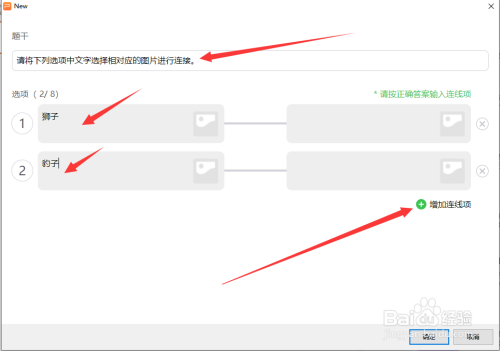 第五步:点击”连线题“后,就会弹出一个连线题的设计窗口。