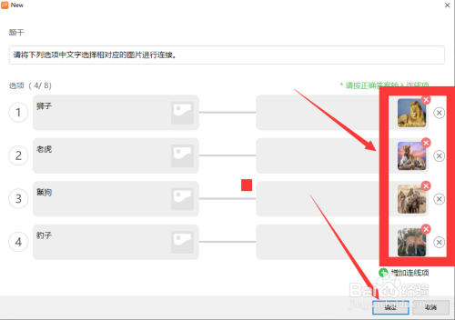 第一步:建造连线题前首先要做好筹办工作,总共有几项连线题,以及是否需要按照图片进行连线操作。(演示以图片连线为例)