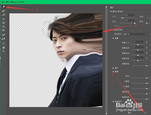 接着选择【标的目的前变形东西】,把人物标的目的左侧拉动,然后点击确定,如图